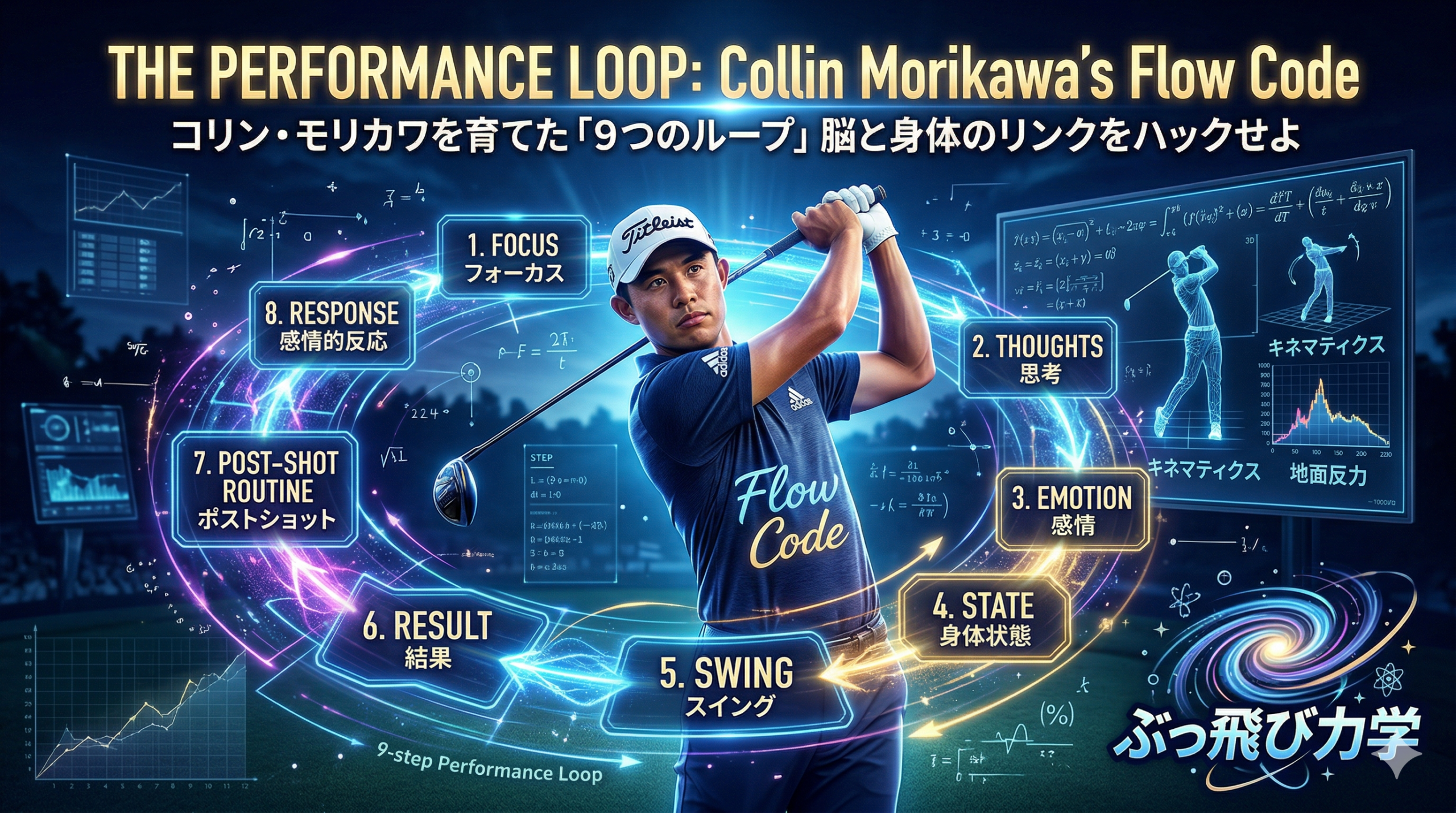 そこで今回は、会員様から多く寄せられるこの「メンタル面」の課題に対する一つの答えをご紹介したいと思います。コリン・モリカワのメンタル&スイングコーチであるリック・セッシングハウス博士らが開発した、脳科学と心理学に基づく実践的システム「Flow Code(フローコード)」を、ぶっ飛び力学の視点から徹底解剖します。